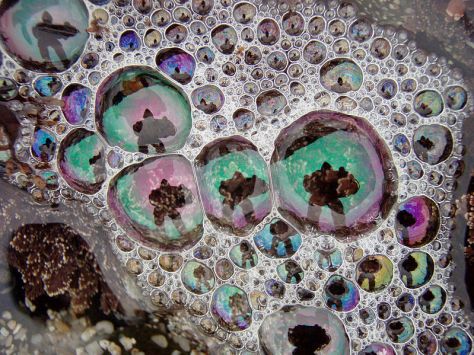 Just as Galatea glanced out to sea, a rogue wave crested and crashed on the rocks. Countless particles of united seawater sent Galatea onto her back and into the blackberry bushes. When she looked up, in spite of the thorns pricking her knees and hands, she saw that Acis had disappeared. But when she looked down at the rocks, in a pool of sea-foam, she saw a glimpse of Acis. Looking to her left and right, she saw other bits of the girl as she crawled on her hands and knees back towards the edge of the rocks.